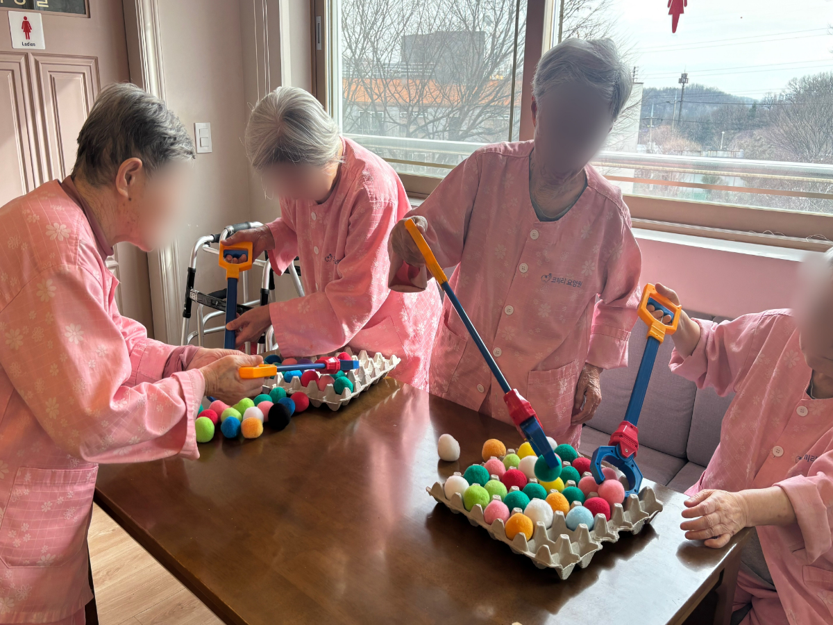 안녕하세요~코끼리요양원 입니다 ●'◡'●오늘은 어르신들과 함께 계란판 탁구공 옮기기 프..